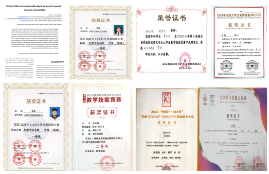 近三年英语专业学生中逾100 人次在国家级和省级学科竞赛中获奖,9人次先后在国家级和省级师范生教学技能竞赛中斩获佳绩,逾 10 人次先后获批国家级、省级和校级大创项目及互联网+项目立项,数名学生发表教研论文,参与本专业教师的课题研究。