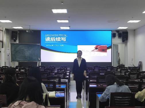 张岚老师是外院的优秀校友,她用自己丰富的学识和教学经验呈现了一节生动的“读后续写”英语课。这节课主要有四个教学环节:理解阅读材料,讲授续写要求,学生当堂写作和分享讲解习作。在第一个环节,张老师引导学生深入分析阅读材料的文体结构,叙述方式和主题内涵。在第二个环节,张老师从记叙文六要素入手,帮助学生梳理续写的思路。在讲述续写基本策略和原则时,她特别强调培养学生们的发散性思维:“高中生最重要的是思维的培养”。第三个环节是学生10分钟的自由写作,然后课堂进入第四个展示环节。与传统的老师讲解范文的教学模式不同的是,她请学生到讲台上讲解自己作文的结构和用词,并进行自我评价。四十分钟很快就过去了,张老师以缜密的教学设计,娴熟的教学技巧,创造了良好的课堂氛围,高质量地实现了教学目标。
