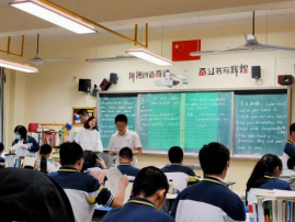 20名见习生共分为两组,每组十人,分别在高二(9)班和高三(3)班观摩学习。高二(9)班上的是“定语从句”语法课;高三(3)班上的是应用文写作课。语法课上李志超老师通过听写检查学生对单词的掌握情况,然后详细讲解定语从句的先行词和引导词,并列举了大量的例子,最后请学生造句,检验学生对定语从句的掌握情况。李老师的教学过程环环相扣,注重学生知识的内化和运用。