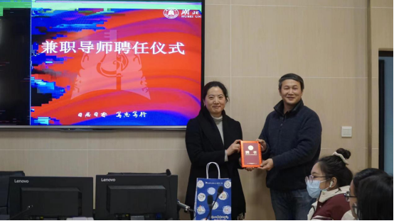 正式开始讲座前,步婧老师向同学们隆重介绍了陈子剑老师。随后,副院长吕奇教授向陈子剑老师颁发了兼职导师聘书。陈老师也为参与新闻编译实习的同学代表颁发了实习证明。