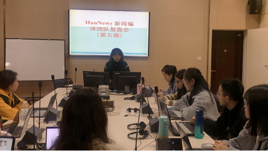 3月13日,翻译系举办武汉广播电视台海外频道HanNews电视新闻编译实习第五期案例分享会,参与本期实习的2023级翻译硕士(MTI)及2021级、2022级翻译专业本科学生就编译及配音任务进行复盘总结。会议在逸夫人文楼A5002举行,翻译系主任步婧老师主持会议。