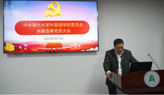 刘建伟代表上届学院党委作了《不忘教书育人初心,牢记立德树人使命,凝心聚力,开拓创新,奋力谱写学院事业发展新篇章》为主题的工作报告。报告中,刘建伟全面回顾和总结了过去八年学院党委在政治建设、思想建设、组织建设、作风建设、制度建设、综合治理、工会建设、离退休和校友工作等八个方面取得的成绩,也指出了工作中存在的不足之处。刘建伟在报告中提出了学院党委今后工作努力的方向,学院将进一步加强党建工作、加强师资队伍建设、加强学科和专业建设、加强人才培养质量、加强学生工作。站在新的历史起点和交汇点上,刘建伟号召全院师生团结一心,以“拼”“抢”“实”的状态和作风,扎实工作,开拓创新,为学校“学科建设和综合实力双突破”战略目标的实现,贡献外院人的责任和担当!