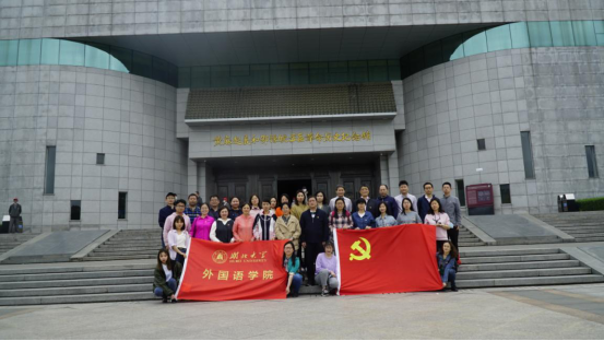 在董必武故居,学院党委现场组织开展“英语讲述党史人物——董必武:长征路上三不停”的主题微党课。学院研究生第一党支部学生党员徐燕子,在董必武故居门前用英语为全体党员讲述了董必武同志的革命事迹,用专业知识重温党的光辉历程、传承党的红色基因。