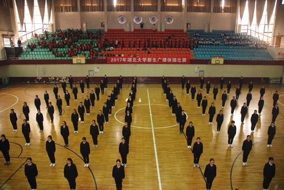 广播操大赛作为本次体育文化节的一大亮点于11月8号下午在二号体育馆举行,ok138cn太阳集团529、资源环境学院、化学与化工学院、艺术学院及生命科学学院2017级新生参与了此次比赛。本次大赛由体育学院邓世忠老师担任裁判长,五个学院书记担任评委。