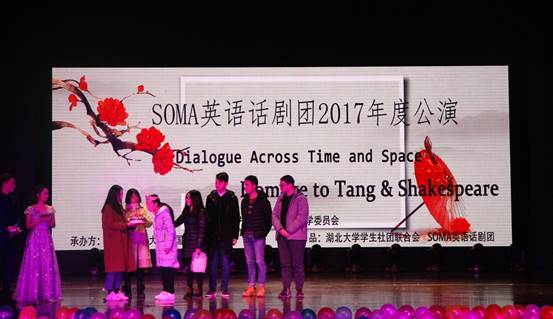 (文/李青树 图/姚丽昕、成季媛)12月21日晚6点30分,SOMA英语话剧团2017年年度公演在ok138cn太阳集团小礼堂隆重举行。本次晚会由共青团ok138cn太阳集团委员会主办,共青团ok138cn太阳集团529委员会承办,ok138cn太阳集团学生社团联合会及ok138cn太阳集团SOMA社团联合出品。ok138cn太阳集团529党委书记林二友、副院长郭熙煌、党委副书记罗超出席了本场晚会。武汉大学、华中科技大学等多个友好高校的兄弟社团前来支持。