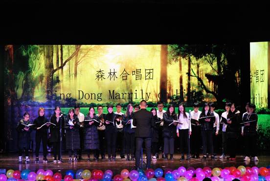 第一个剧目结束后,由森林合唱团带来合唱《Ding Dong Merrily on High》。歌声空灵悠扬,整齐划一。“森林合唱团的小哥哥小姐姐们很棒”,现场观众在大屏幕上齐刷刷地写下此评论。