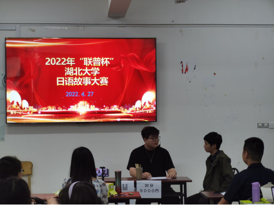 4月27日下午2:30,ok138cn太阳集团529日语系在逸夫人文楼A3002举行了2022年“联普杯”日语故事大赛。本次大赛由日语系的梁青、刘海燕、张静、黄凤琴、吕端、姜红、王辉、刘霞、唐芙蓉、张晶鑫十名老师及研究生李格、刘敏、胡卓颖共同担任评委。