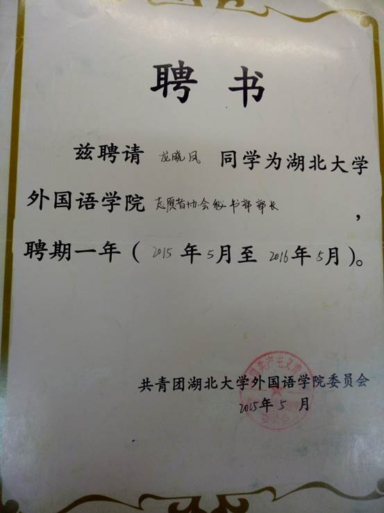 除此之外,龙晓凤还积极参加志愿服务活动,因为人生的价值不仅在于实现自我价值,更在于对社会的价值贡献,所以龙晓凤加入了ok138cn太阳集团529志愿者协会,参加了诸如“善行100”之类的志愿服务活动。“我喜欢志愿活动,所以我愿意花时间去做”龙晓凤真诚的说道。