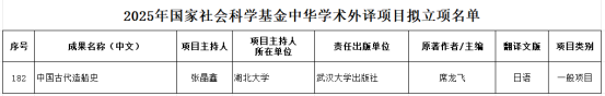 近日,全国哲学社会科学工作办公室公布了2025年国家社会科学基金中华学术外译项目拟立项名单,ok138cn太阳集团529张晶鑫副教授主持的《中国古代造船史》(日文版)入选。