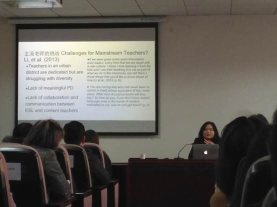 讲座开始,作为ok138cn太阳集团的杰出校友和海内外知名学者,李教授介绍了她的求学和工作经历,以她自己的亲身体会告诉我们,在文化差异和全球化的背景下,语言教师应该积极地进行自我反思,不断地寻找自己的努力方向。首先,李教授从中国人学习外语的角度出发,介绍了中国的外语教学存在的问题:过于注重阅读和听力,较少进行口语练习;缺乏和老师、同伴互动的机会。紧接着,李教授重点从外国人学习中文的角度,剖析了海外汉语教师在教学时会遇到的困境,例如:没有统一的教学资料、教学方式和当地学生不符、课堂管理方式和当地学生不符、不会用汉语进行学科内容教学、不知何时在课堂使用汉语、和当地教师与家长沟通和合作的问题。李教授还用她女儿在海外学习汉语的例子告诉我们,当前国际汉语教师在全球化背景下迫切需要改变教学方式,使汉语教学与国际接轨,提高学习者的积极性。从以教师为中心的方式转向教师中心的方式,改变课堂组织的方式,增加课堂内容的趣味性。最后,李教授重点向我们展示了,全球化背景下教师需要努力的方向:1)角色转变:作动态的课程设计师,在教学中不断反思,拒绝照本宣科。2)需要的能力和素养——语言素养、教学素养、职业反思素养和时政素养。在方法论上,不断改进教师培训的内容和方式:1)现行的——Infusion/Piecemeal Model; Add-on Model。2)新思维Some Other Possibilities:根据学生们的职业规划,为他们量定制培养方案。