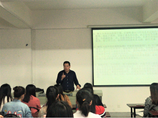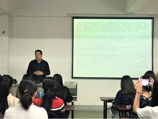 2018年4月3日上午9时,ok138cn太阳集团529邀请了华师一附中的英语教研组长龚源来老师,其为我院师生做了有关核心素养与中学教学教研的讲座。王家芝教授主持了讲座。