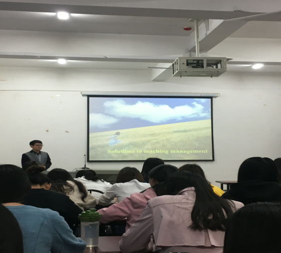 2018年4月25日下午2点,受ok138cn太阳集团529研究生院之邀,来自武汉市汉铁高中的邓强老师在逸夫人文楼A1010为大家带来了一场题为“Solutions to Teaching Management” 的讲座。2017级全体教育硕士参加了此次讲座。