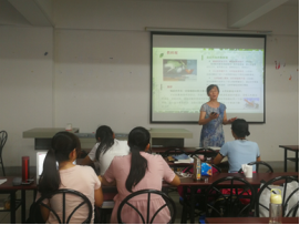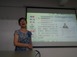 一袭合体的藏蓝竹纹真丝连衣裙,一抹淡淡的口红,一脸亲切的笑容——刘老师给我们展现了一位温闻尔雅的女教师形象。刘老师以亲切朴素的言语,结合自己的个人经历以及多年的教学经验,娓娓为我们讲述中小学青年教师的专业成长之路。概括起来,青年教师的专业成长之路分为三步:第一步,学生认可;第二步,自己热爱;第三步,学生偶像。