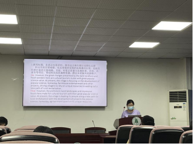 指导老师代表陶然老师发表心得,讲解指导修改过程。陶老师结合自身的口译员经验,鼓励同学们把握这一市场历练机会,在目前风险较小的情况下丰满羽翼,体验市场竞争,感受市场压力。就学生译稿中存在的共性问题,陶老师还从个人的词汇、句法使用,到团队配合和协作,从文化差异到语言结构,从搜集信息到积累经验都做了详尽说明,令在场的同学们受益匪浅。