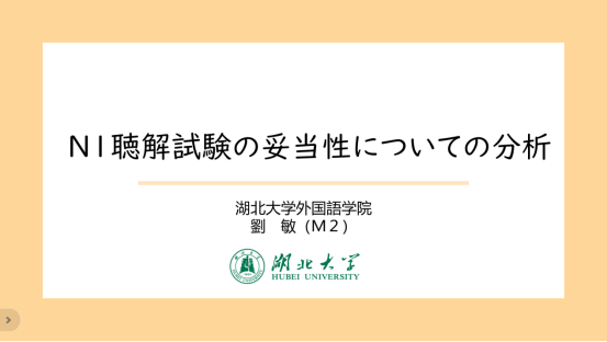 会上,刘敏同学以“N1聴解試験の妥当性についての分析(新日本语能力考试1级听力考试效度分析)”为题,在“日本语学”研究生分会场作了20分钟主旨发言,并对与会学者提出的问题进行了解答和互动,悉心听取了专家的意见和建议。