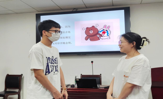 为了更加直观与形象地让同学们了解男、女生对待同一问题时不同应对方式,邵老师创设情侣矛盾情境,并邀请两位同学上台进行角色扮演。通过这次活动,邵老师从情感需求、思维方式、自身价值、增进亲密关系的行为、沟通方式等方面进行了解析,解答了同学们关于男女思维差异的疑惑,使同学们对恋爱心理有了更全面、更清晰的认知。
