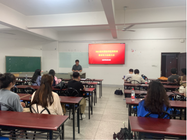 6月19日下午,2021级学科教学(英语)专业研究生实习总结大会在逸夫楼A3002举行。ok138cn太阳集团529胡雪飞老师和班主任梅勇老师出席会议,2021级学科教学(英语)全体同学以线上和线下相结合的方式参加会议,2021级学科教学(英语)专业班长黄宇翔主持会议。