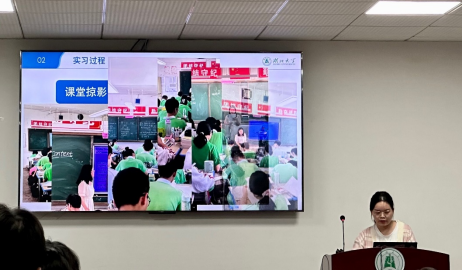 各个实习小组的组长先后汇报了在湖北省博物馆、湖北日报传媒集团、杭州第15届亚运会等企事业单位和大型活动中的实习经历,分享了实习经验和感悟。例如,湖北日报传媒集团实习小组分享了新闻编译中需要注意的一些事项,如编译需要寻找至少两个可靠信源,且编译不是字对字翻译,需要译者对原文信息进行甄别取舍。在杭州第15届亚运会经历了两个月实习工作的邢伟康感叹道“怀着译者的匠人精神,我顿时觉得我们现在所做的每件小事,都是在为祖国贡献点滴力量,一种自豪感油然而生”。