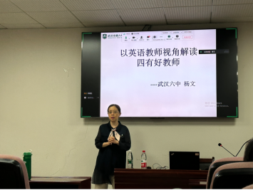 杨老师这次的讲座主题是“以英语教师视角解读四有好教师”,首先杨老师指出“四有好教师的提法是当前对教师要求的高度浓缩和概括,反映了一名合格的教师应当具有的基本素养”;其次,杨老师针对“四有”即有理想信念、有道德情操、有扎实学识和有仁爱之心这四个方面分别进行了详细阐述,并结合实例给出了一些宝贵的建议,如作为教师要主动了解时事政策、要学会处理好师生关系与同事关系、要有爱心有责任有方法等等;此外,杨老师还强调“没有当过班主任的老师是缺失的”,班主任工作是中学教师的必不可少的工作职责,在核心素养背景下班主任也要做好自我定位。