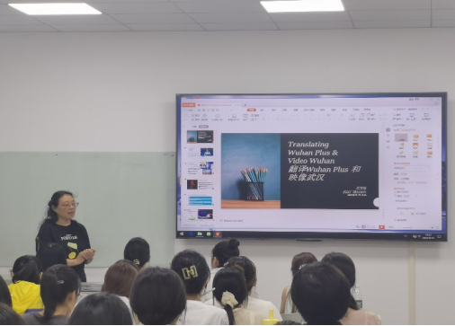 龚老师的讲座围绕“Wuhan Plus ”和“映像武汉”两个内容展开。首先,龚老师通过分析翻译实践案例向同学们介绍了字幕翻译的重点和方法。接着,龚老师从翻译侧重点、发展历程以及翻译注意事项等方面对“Wuhan Plus”进行了详细介绍。随后,龚老师以有关武汉的风景类翻译为例,与同学们一起探讨了优美风景句的理解和翻译方法。再接着,龚老师以一篇有关农学博士的翻译文本为例,向同学们介绍了翻译过程中有关一语双关句的处理方法,极大地调动了同学们的积极性和想象力。最后,龚老师对一个由AI软件翻译的段落进行了讲解,鼓励同学们克服AI焦虑,积极寻找翻译突破点。