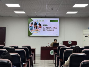 高芬老师首先强调了新课标引领下英语教学变革的迫切性。她指出,传统教学模式已难以满足核心素养的培养要求,当前教学需从理念、课堂、技术三个维度进行深度革新。高老师提出必须以核心素养为导向,筑牢基础教学根基。她特别强调“融合新概念必须与夯实基础形成正向循环”。随后,高老师重点阐述了大单元视角下的课堂创新模式,并结合教学实例,从内容整合、教学设计和教学评一体化系统介绍“课堂重构”的实践方案。高老师分享了一系列AI赋能教学的创新探索,如利用ChatGPT、Canva等AI工具辅助教学,这些前沿案例极大地开拓了同学们的视野。