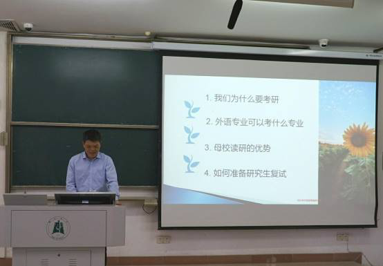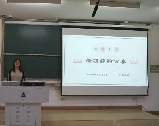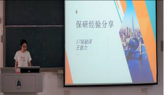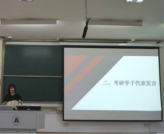 紧接着,英语教育专业向钰婷、商务英语专业杨玉蓉、法语专业董晨、英语+国贸专业艾艳秋、翻译专业杨安琪、翻译专业尹文静等6位2017级优秀考研代表分享了自己的考研经历,向学弟学妹们介绍了考研学校和专业的选择、初复试备考、身心调适等各个方面的信息,全面且详细地分享宝贵的考研经验。