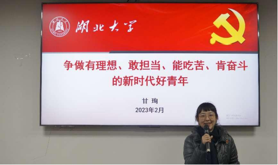 甘珣紧扣党的二十大精神,从“旗帜、道路、精神状态、目标”等四个方面阐述了大会主题,重点讲解了“三个务必”的内涵,呼吁青年人要敢于斗争、善于斗争。同时,结合报告三个板块、十五个部分中蕴含的新提法、新论断、新思想,强调科教兴国战略、人才强国战略、创新驱动发展战略是党中央提出的需要长期坚持的国家重大战略,是事关现代化建设高质量发展的关键问题